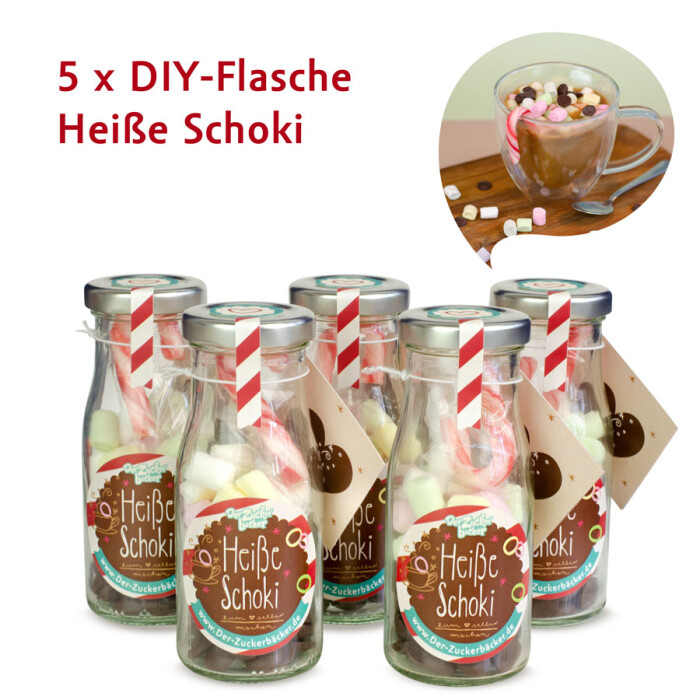 Heisse Schoki – nun im Geschenkset zum Teilen. Mit unserem 5er Geschenk-Set holst Du Dir ein Stueck nach Hause oder verschenkst pure Genussfreude. n Die Hauptdarsteller in dieser suessen Show sind die koestlichen Schokoladen-Drops. Diese kleinen, glaenzenden Gluecksbringer schmelzen in Deiner Tasse und verwandeln heisse (Pflanzen-)Milch in eine cremige, dekadente Schokoladenpracht ? als ob Du in eine Wolke aus Schokolade eintauchst!