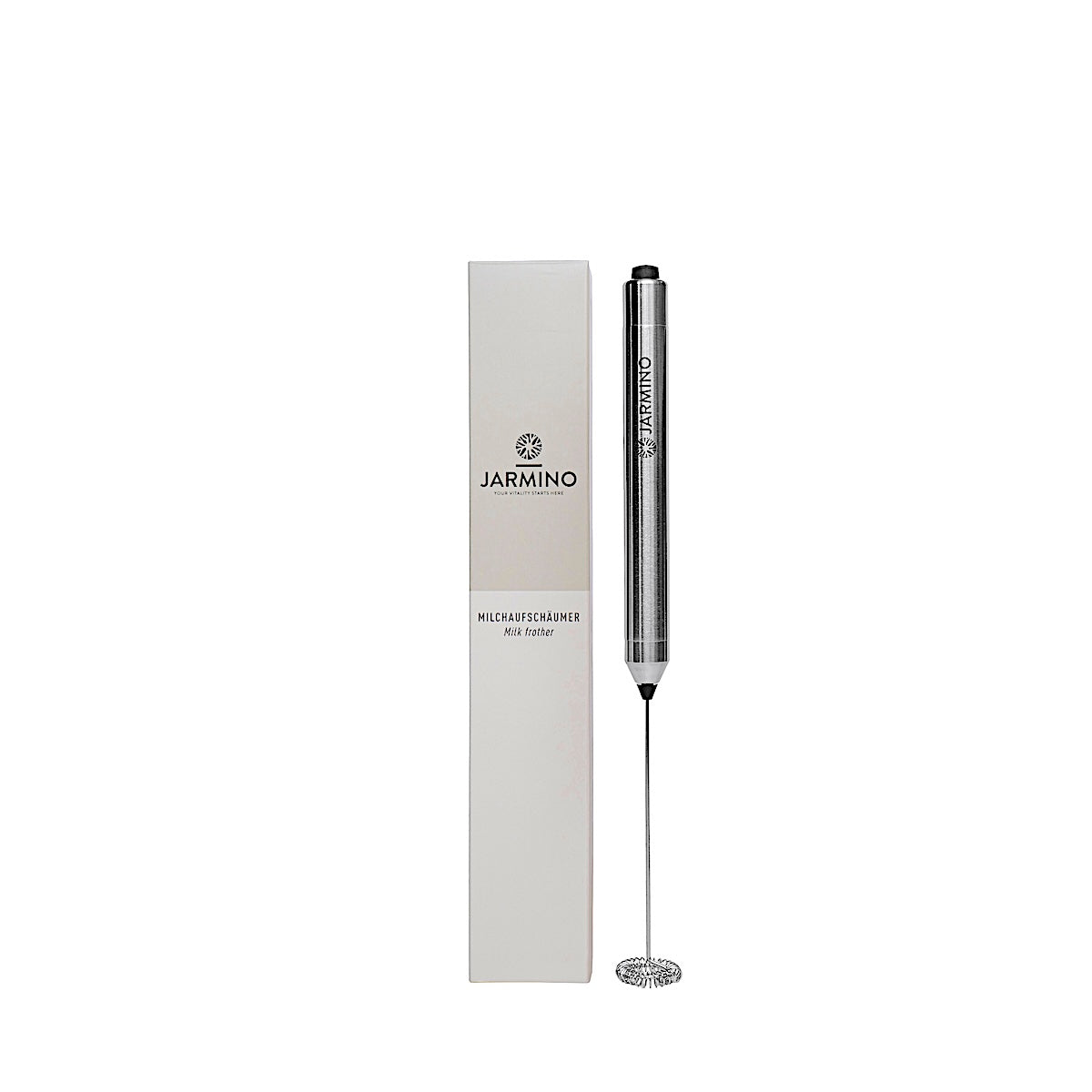 ProduktbeschreibungMixer & MilchaufschäumerJARMINO Mixer & Milchaufschäumer für die perfekte LöslichkeitSo können Sie Ihr Kollagenpulver gleichmäßig und besonders schnell in heiße oder kalte Getränke einrühren.Hauptmerkmale:Kraftvoller Motor: Der leistungsstarke Motor sorgt für extra cremigen Schaum aus Kuhmilch und pflanzlichen Alternativen und kann gleichzeitig Pulver wie Kollagen effizient in Flüssigkeiten mischen.Perfekt für Kollagenpulver: Der Milchaufschäumer eignet sich hervorragend zum Einrühren von Kollagenpulver in Kaffee, Tee, Smoothies oder in Wasser – für eine schnelle Zubereitung.Einfacher Gebrauch: Ein-Knopf-Bedienung ermöglicht eine schnelle und mühelose Zubereitung. Der Milchaufschäumer ist extrem benutzerfreundlich und leicht zu handhaben.Leichte Reinigung: Nach Gebrauch kann der Edelstahl-Schäumer einfach unter fließendem Wasser abgespült werden, was ihn besonders pflegeleicht macht.Warum der JARMINO Milchaufschäumer?Unser Milchaufschäumer ist die ideale Wahl für alle, die ihren Tag mit einem gesunden Kollagen-Drink starten möchten. Dank seiner hohen Leistung mischt er Kollagenpulver gleichmäßig in Ihre Getränke ein und sorgt dafür, dass Sie alle Vorteile des Pulvers genießen können.Verwendung für Kollagenpulver:Verwenden Sie den Milchaufschäumer, um Ihr Kollagenpulver noch schneller in Flüssigkeiten aufzulösen. Egal, ob Sie es in Ihren morgendlichen Kaffee, Tee oder in Smoothies einrühren möchten – der kleine Mixer gewährleistet eine gleichmäßige Konsistenz und sorgt dafür, dass das Kollagen gleichmäßig verteilt und schnell aufgenommen wird.Fazit: Der JARMINO Milchaufschäumer ist das perfekte Multifunktionsgerät für alle, die cremigen Milchschaum lieben und gleichzeitig Wert auf eine gesunde Ernährung legen. Mit seiner Fähigkeit, sowohl Milchschaum als auch Kollagenpulver perfekt zu verarbeiten, bietet er Ihnen vielseitige Einsatzmöglichkeiten und sorgt für ein genussvolles, gesundes Erlebnis – jeden Tag.