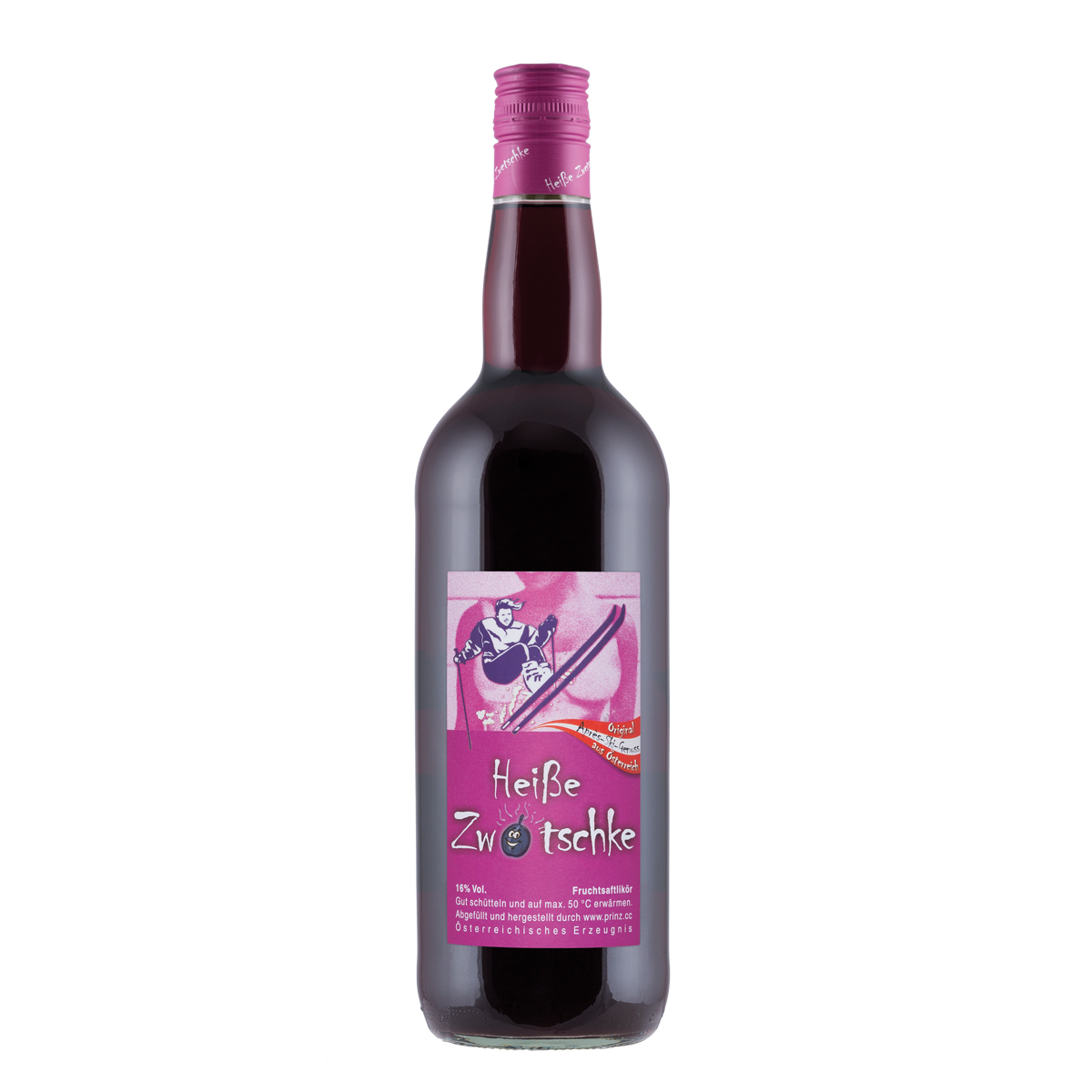 Prinz Heiße-Zwetschke Likör 16 prozent Vol. Max. auf 50° C erwärmen
