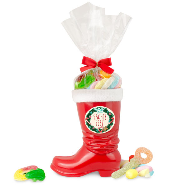 Dieser Stiefel muss nicht nach draussen gestellt werden! Zuckersuesse Suessigkeiten-Mischung in noch suesserem Nikolaus-Stiefel. n m 6. Dezember ist Niklaus. Das heisst, dass am Tag zuvor Klein und Gross ihre Stiefel vor die Tuere stellen. Sobald man dann am Morgen seine Augen oeffnet, sollte man viele Leckereien in seinen Schuhen wiederfinden. Mit dem Santa Schmaus musst Du Dir keine Gedanken darueber machen, welchen Schuh Du raus stellst. Dieser kommt naemlich ganz einfach zu Dir nach Hause. n Der Santa Schmaus ist das perfekt Nikolaus-Geschenk fuer Gross und Klein. Auch als Weihnachtgeschenk unter dem Tannenbaum sieht der schicke Weihnachts-Stiefel hervorragend aus. So kann man den Liebsten die Weihnachtszeit versuessen.